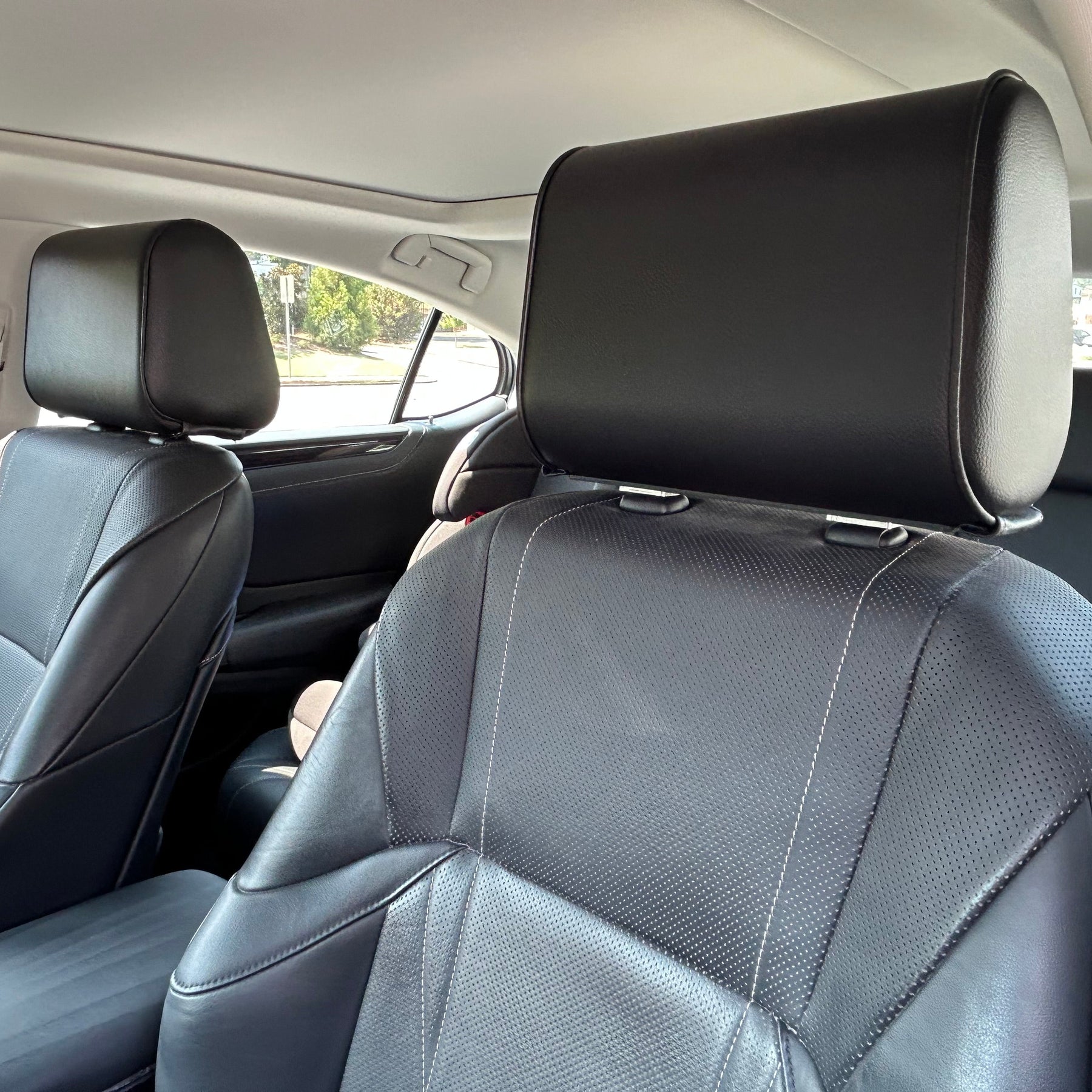 A headrest-mounted hidden safe designed to protect valuables or firearms inside your vehicle — offering maximum security whether you're in or out of the car.