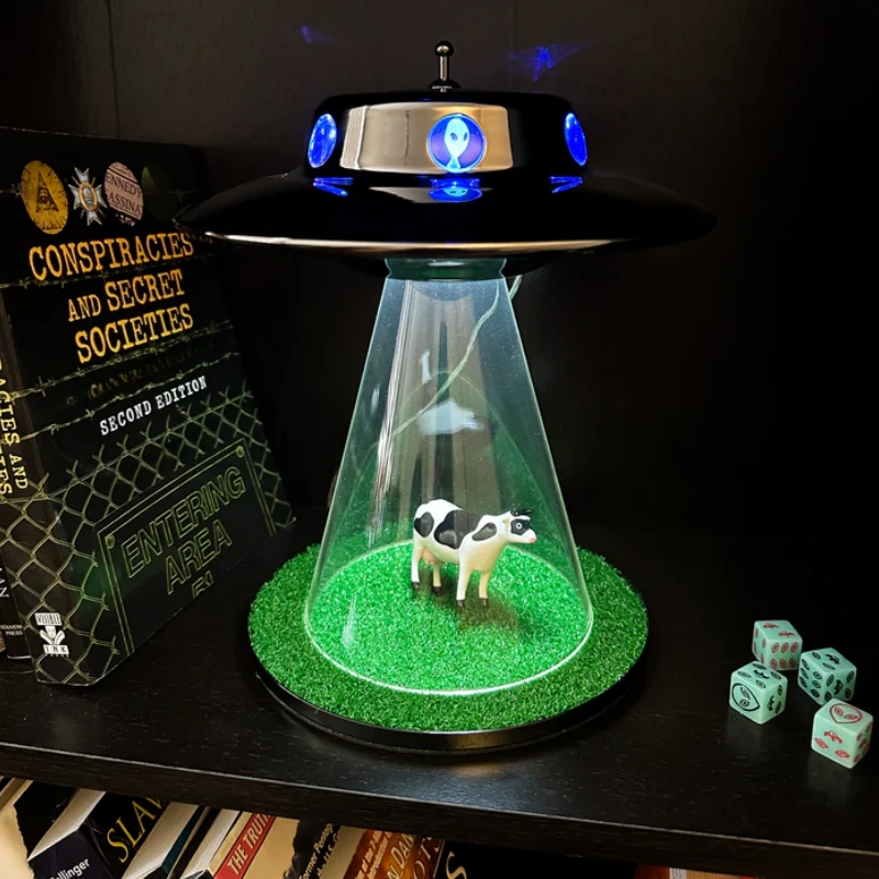 Includes three luminous alien pilots and a floating cow figure—fun, collectible, and customizable display. 🌌