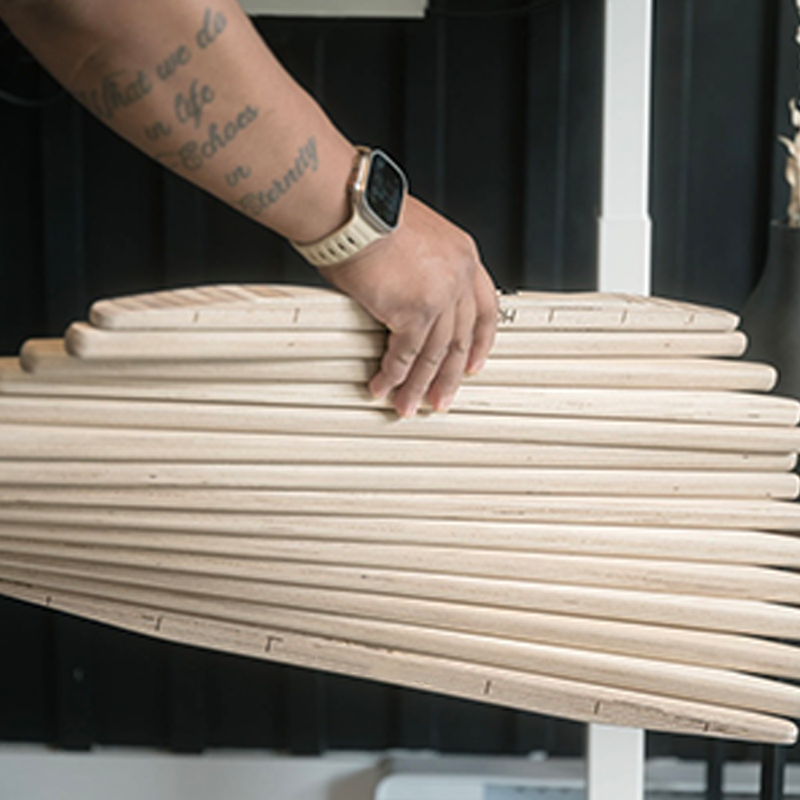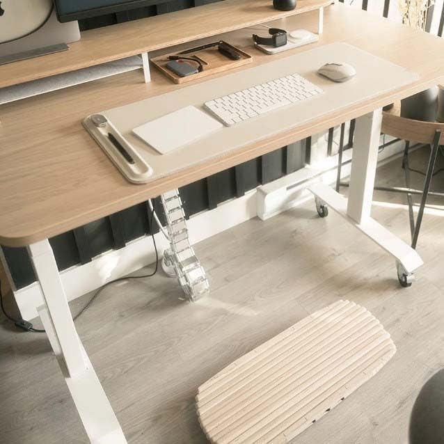 Wooden balance board designed to improve posture and core strength while standing or working.