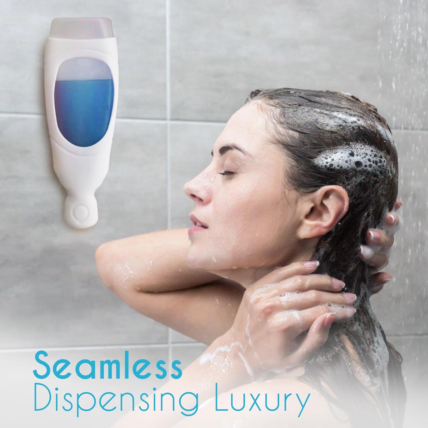 Wall-mounted shower dispenser and storage rack keeps your shower essentials organized and accessible.