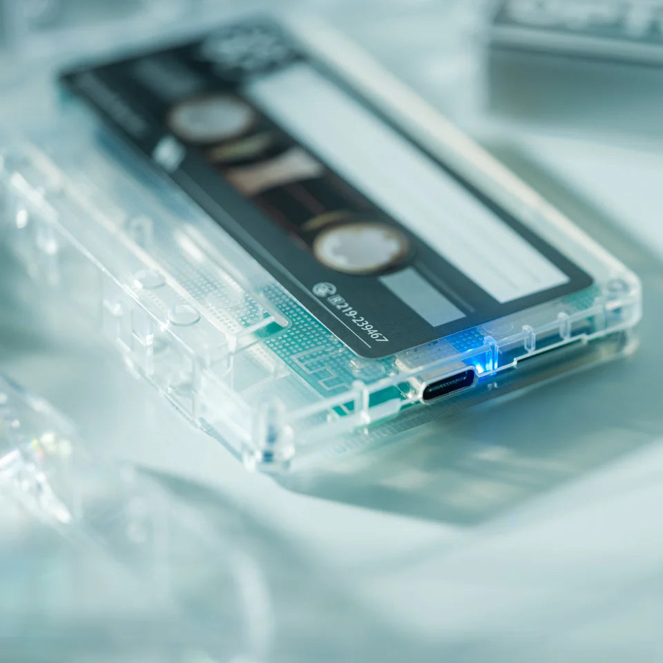 Stylish A-side cassette look combines vintage aesthetics with modern functionality.